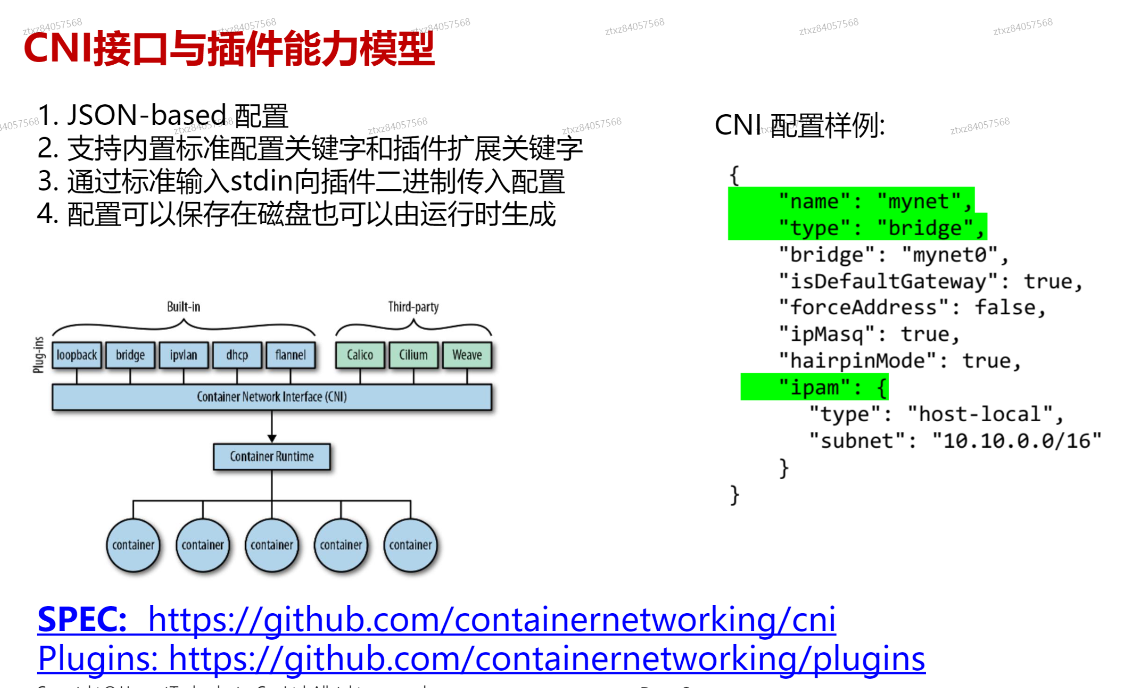 - 不同的CNI插件完成了CNI标准规范里面不同的能力
