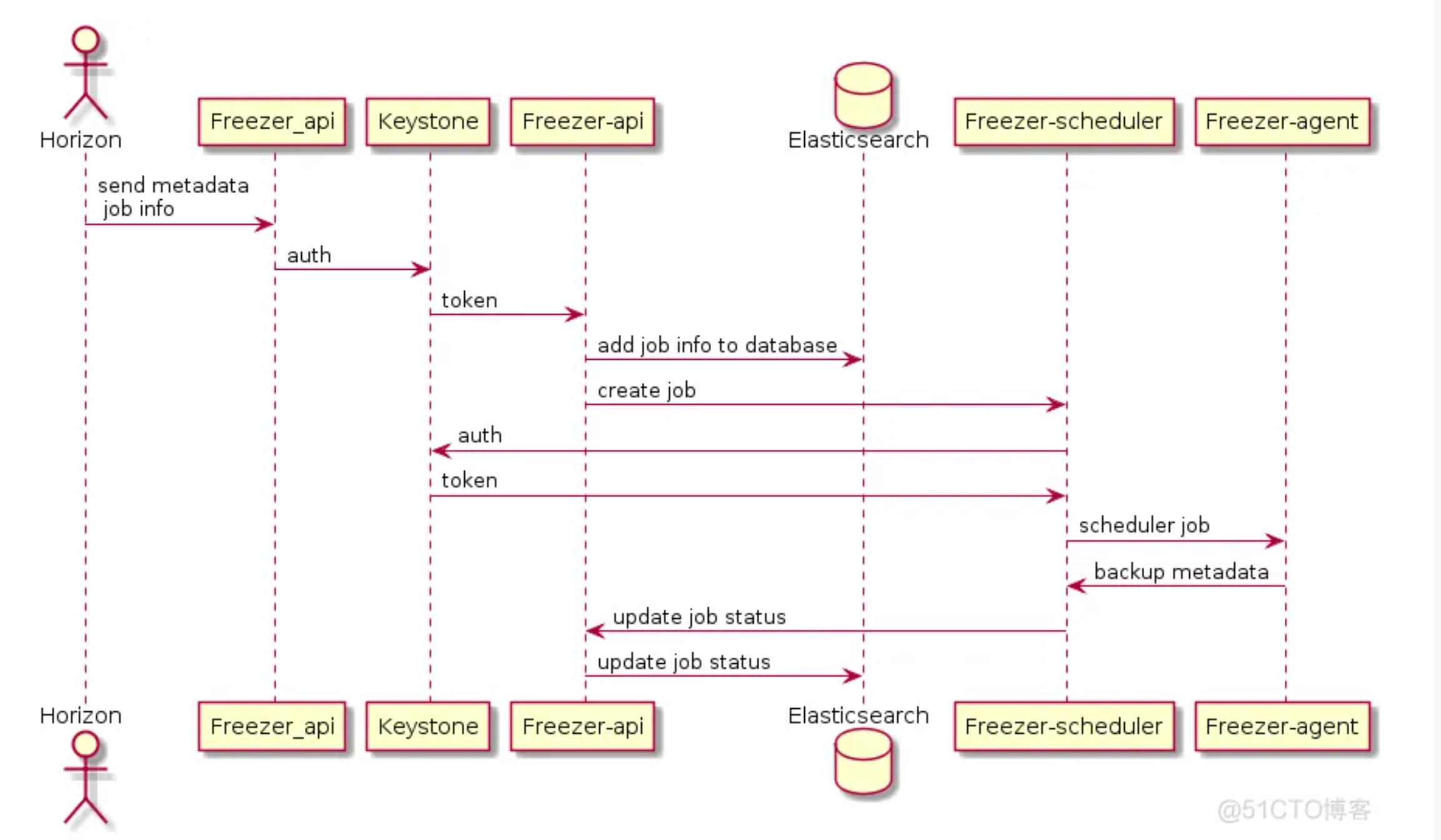 Freezer主要有四个组件, Freezer-Agent、Freezer-Scheduler、Freezer-Web-Ui、 Freezer-Api。